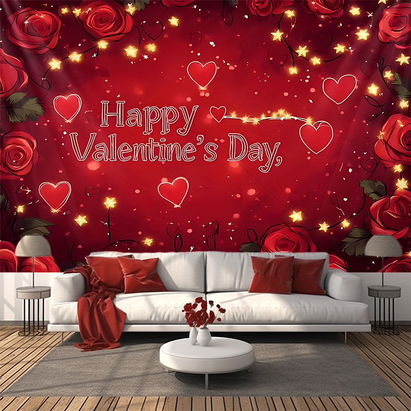 Valentine's Day Tapestry Banners Blanket Rose Love Heart Cute Romantic 3D Party Living Room Shooting Backgrounds Marriage Proposal Decoration Home Decor