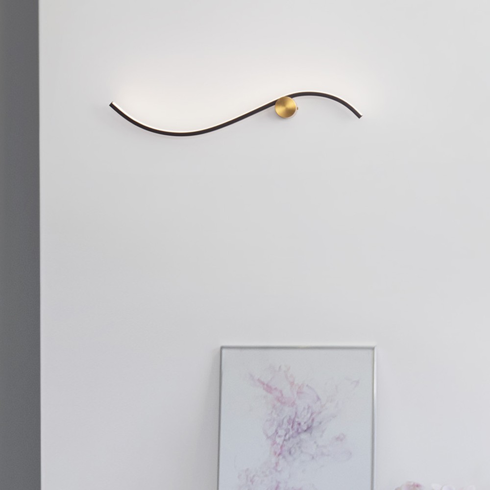Nova Luce Kima - wandlamp - 65 x 13 x 6 cm - 14W LED incl. - goud en zandzwart