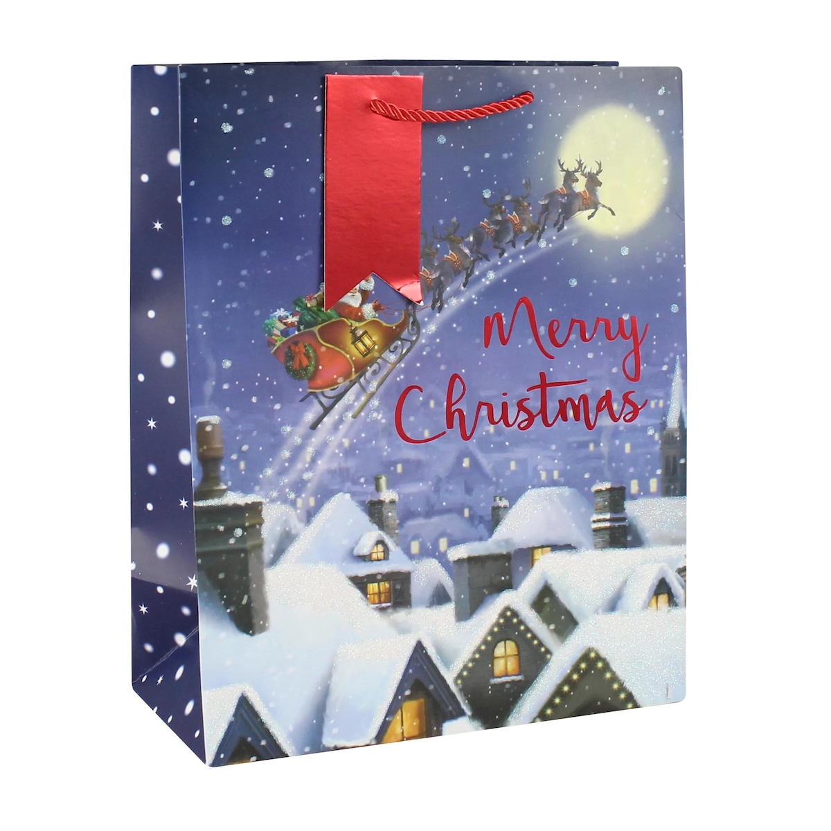 Clairefontaine 12x Geschenktasche L 26,5x14x33 cm, Weihnachten Flying Santa - Mitternachtsblau X-29160-2C