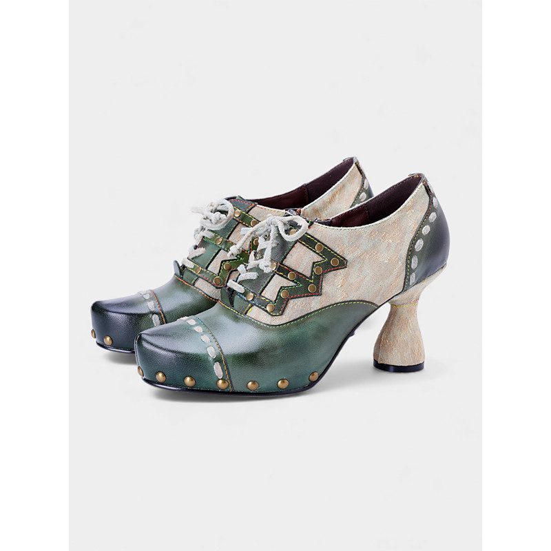 Women's Mardi Gras Green Lace-Up Funky Patterned Heels Oxford – Colorful Carnival Style, Perfect for Festival Celebrations, Fun Vibrant Look