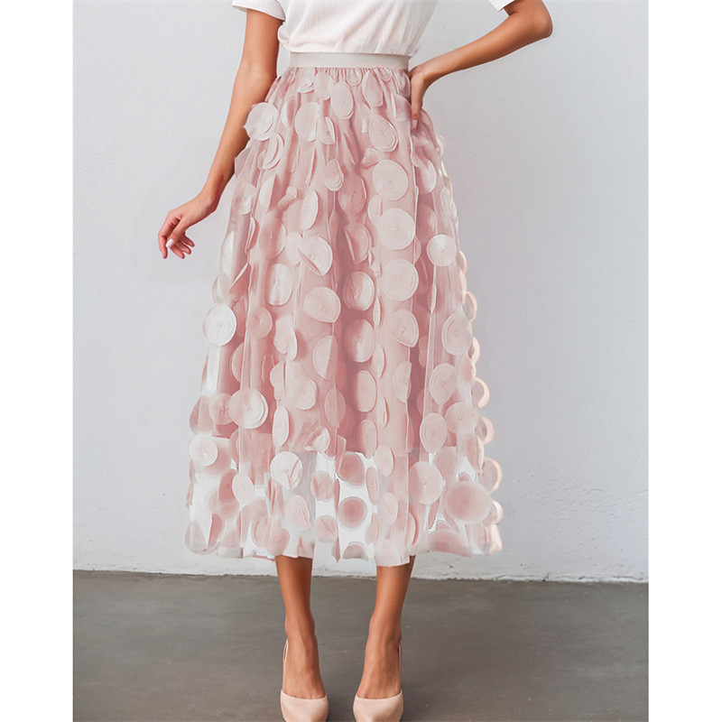 Women's Asian Size A Line Gauze Skirts Elegant Fashion Midi High Waist Skirts Solid Colored Flower Floral Tulle Micro-elastic Family Gathering Casual Daily Apricot Wine Red Black White Spring, Fall