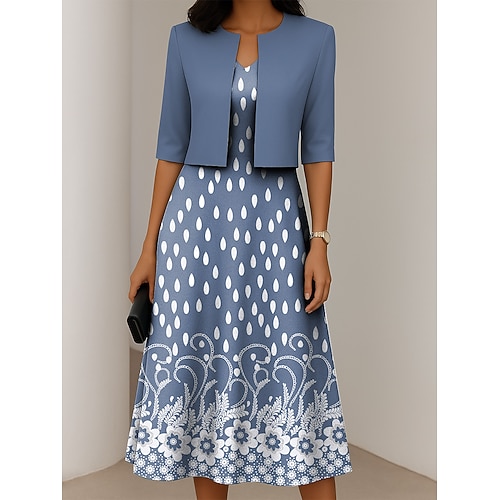 Per donna Insieme del vestito Abito a trapezio Abito Estivo Elegante Casual Ombre Floreale Stampato Abito Midi Mezza Manica Scollo a V Formale Vacanza Blu Verde scuro Arancione Estate Primavera