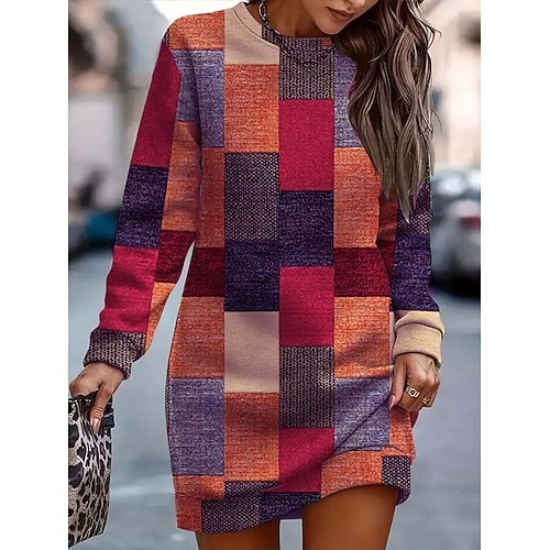Per donna Abito Midi Abito a Tubino Abito a trapezio Casual Quotidiano Vestibilità regolare Grafico Geometrico Manica Lunga Collo quadrato Blu Viola Arancione Verde Autunno Inverno