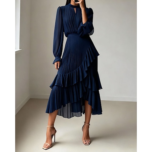 Per donna Abito Midi Abito nero Vestito Casual Elegante Moda Moderno Quotidiano Ufficio Ferie Vestibilità regolare Semplice Manica Lunga Scollo a V Nero Vino Blu marino Verde scuro Primavera Autunno