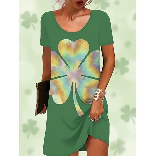 Giorno di San Patrizio Per donna Mini Abito Vestito Casual Vestito T-Shirt Moda Moderno Quotidiano All'aperto Festa di San Patrizio Vestibilità regolare Grafico Trifoglio Manica Corta Girocollo Verde