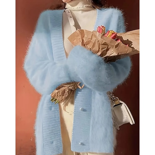 Per donna Felpa Cardigan Elegante Moda Streetwear Colore Puro Scollo a V Tasca Lavorato a maglia Manica Lunga Top Regolari Maglia All'aperto Quotidiano Weekend Azzurro Autunno Inverno