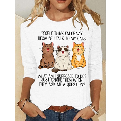 Per donna Maglietta Grafico Animale Gatto Moda Casual Manica Corta Manica Lunga Girocollo Top Regolari Quotidiano Weekend Stampato Nero Bianco Rosa Verde Cachi Estate Primavera Autunno