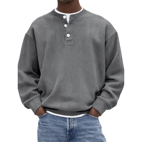 Herren T Shirt Cordhemd Henley Hemd Langarmshirt Langarm Henley Frühling Herbst Einfach Mode Streetwear Freizeit Knöpfe Lässig Täglich Urlaub Schwarz Weiß Hellgrün Top T-Shirt für Herren