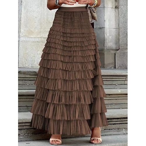 Per donna Gonna da vacanza Elegante Moda Maxi Vita Alta Gonne Semplice Patchwork Stratificato Inelastico Quotidiano Feste Blu Nero Bianco Crema Primavera Poliestere