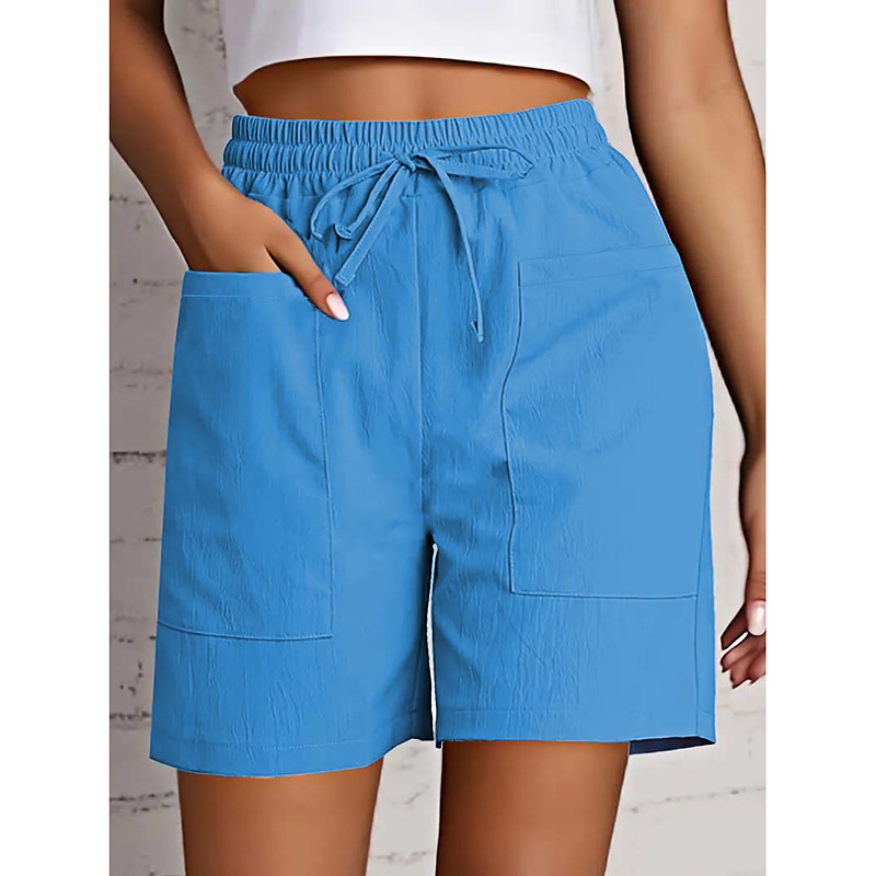 Women's Slacks Comfort Casual / Sporty Short High Waist Plain Drawstring Casual Daily carmine Apricot Black White Summer Regular Fit