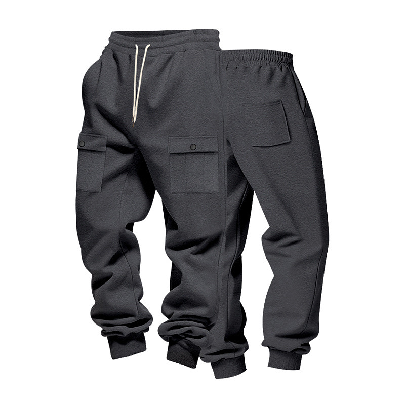 Multi Packs 2pcs Men's blackdark grey Sweatpants Cargo Sweatpants Drawstring Elastic Waist Plain Vacation Daily Wear Polyester Fall
