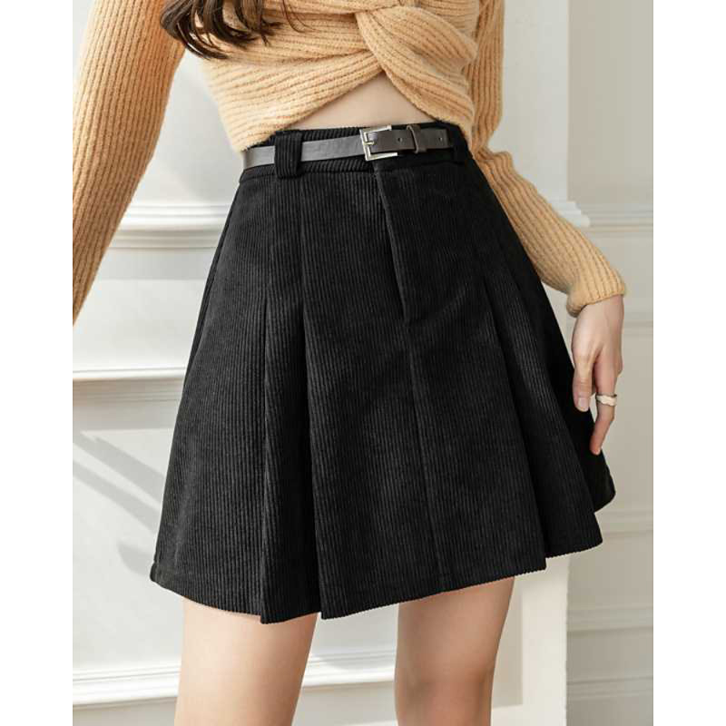 Women's Skirt Casual Mini High Waist Skirts Plain Ruched Pleated Inelastic Daily Street Black Khaki Coffee Fall Corduroy Polyester