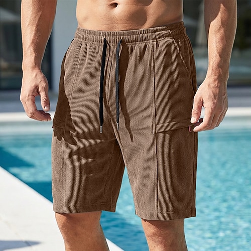 Per uomo Shorts Pantaloncini casual Pantaloncini di velluto a coste Tasca Elastico in vita Semplice Comodità Traspirante Corto All'aperto Vacanza Abbigliamento quotidiano Moda Streetwear Nero Cachi
