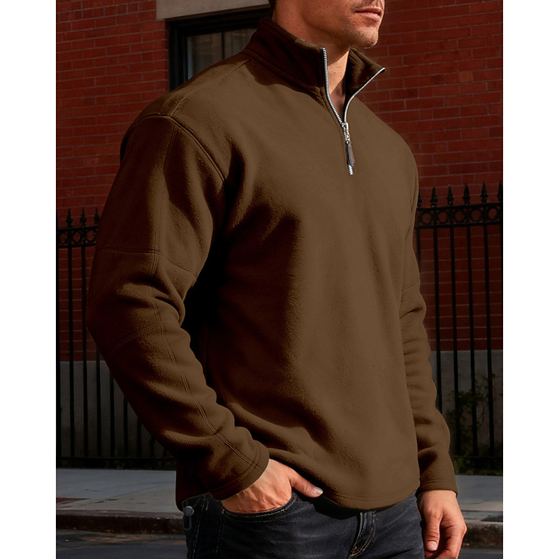 Men's Polo Shirts Quarter Zip Polo Vacation Street Quarter Zip Long Sleeve Fashion Basic Solid Color Zipper Fleece Fall Winter Regular Fit Navy Black khaki Dark Gray Coffee Polo Shirts