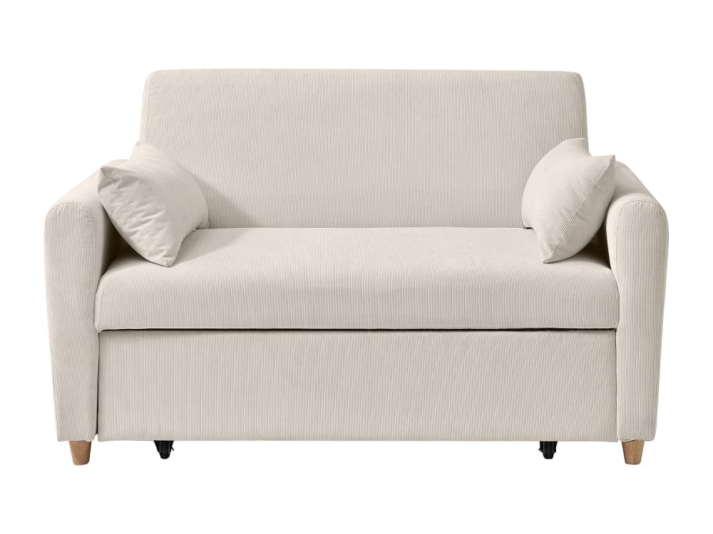 Divano a 2 posti con panca, tessuto, gambe in legno grigio chiaro