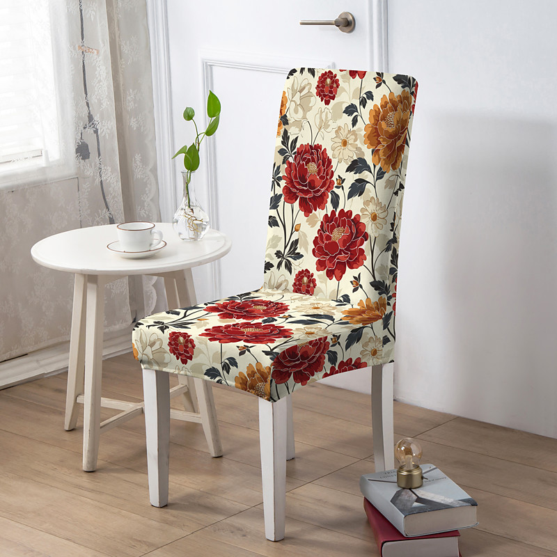 Christmas Dining Chair Cover, Geometric Printed Polyester Slipcover, Elastic Non-Slip Chair Protector for Home or Party