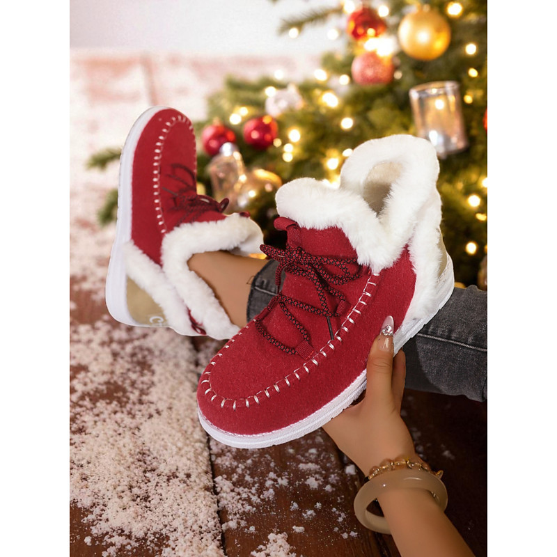 Women's Boots Snow Boots Lace Up Boots Winter Boots Christmas Daily Fleece Lined Booties Ankle Boots Flat Heel Round Toe Casual Faux Fur Cloth Loafer Black Pink Red