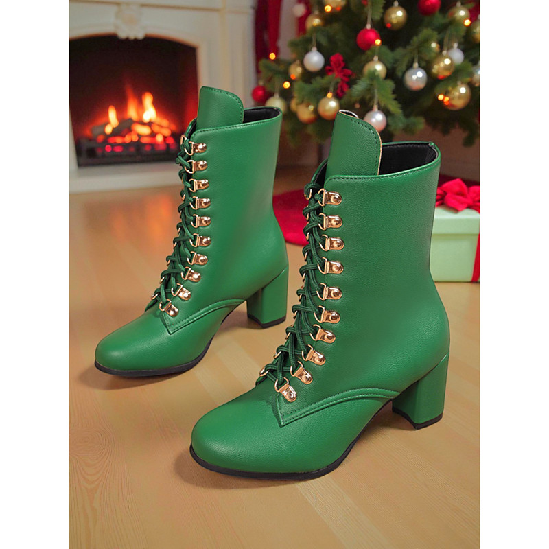 Women's Red Lace-Up Ankle Fashion Boots with Block Heel - Stylish, Comfortable, Perfect for Christmas, Holiday and Casual Wear