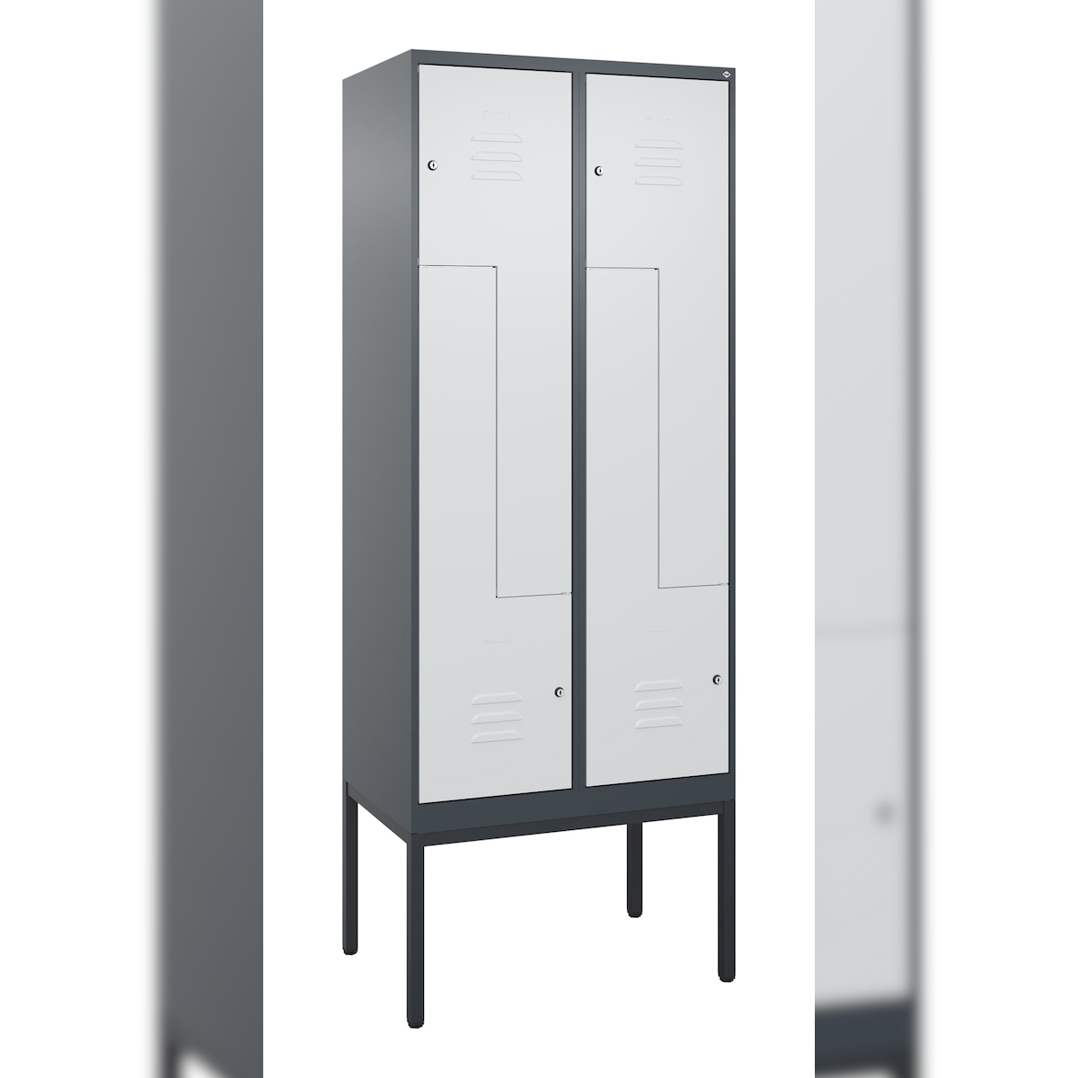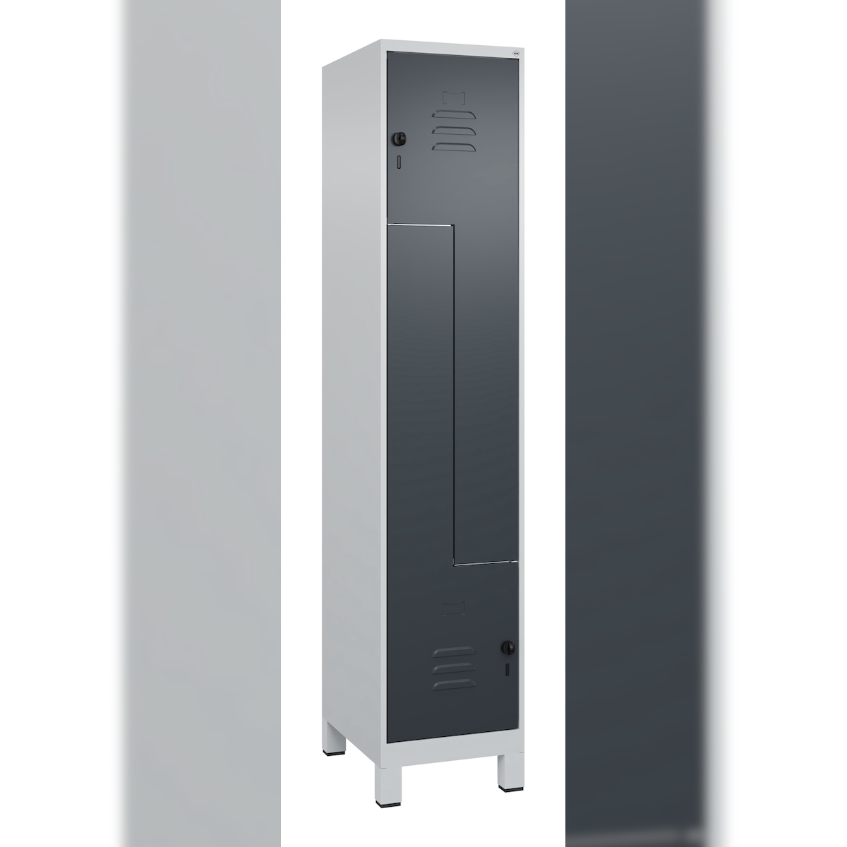 C+P Z-Spind Classic PLUS, Füßen, 2 Abteile, HxBxT 195x40x50cm, Sicherheitsdrehriegel, Hellgrau/Anthrazit von PROREGAL