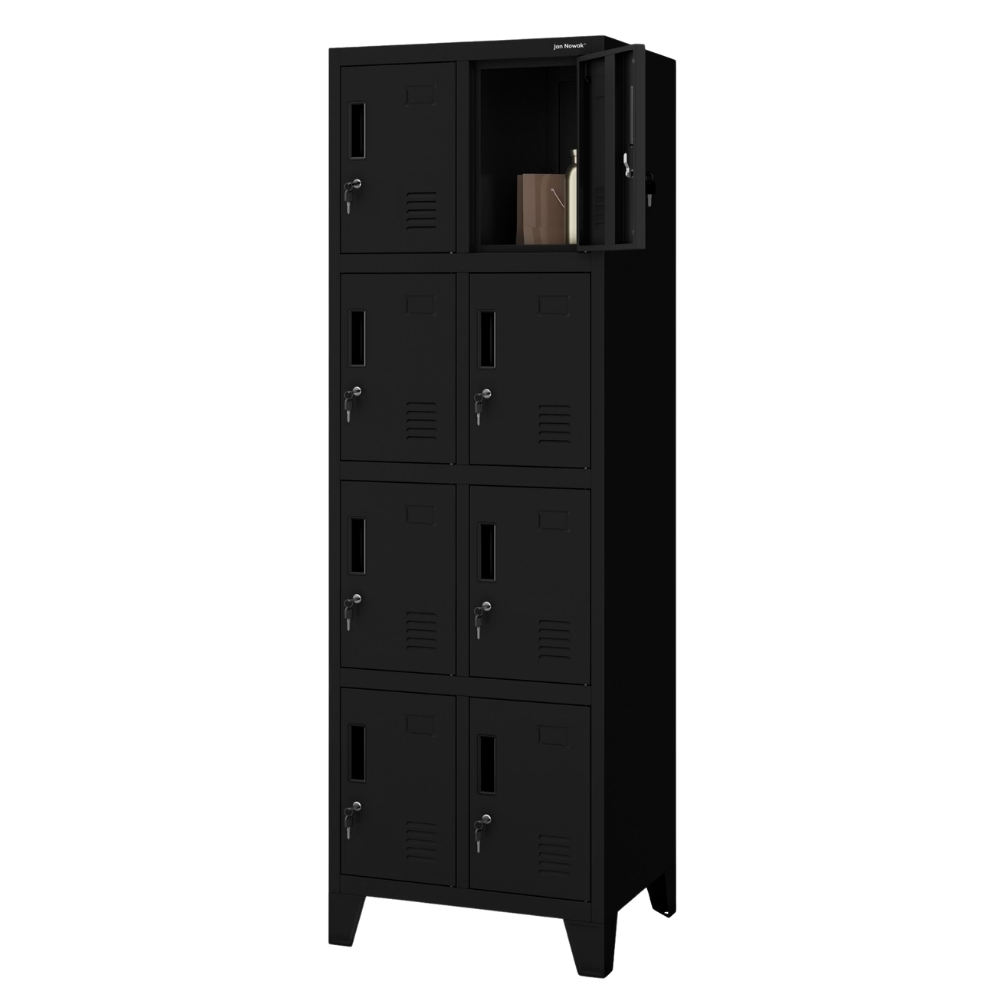 DELUKE Schließfachschrank Spind TAMPA 8 Fächer Etikettenhalter Lüftungsschlitze Wertfachschrank Umkleideschrank Metall Kleiderspind 172x55,9x45cm Schwarz