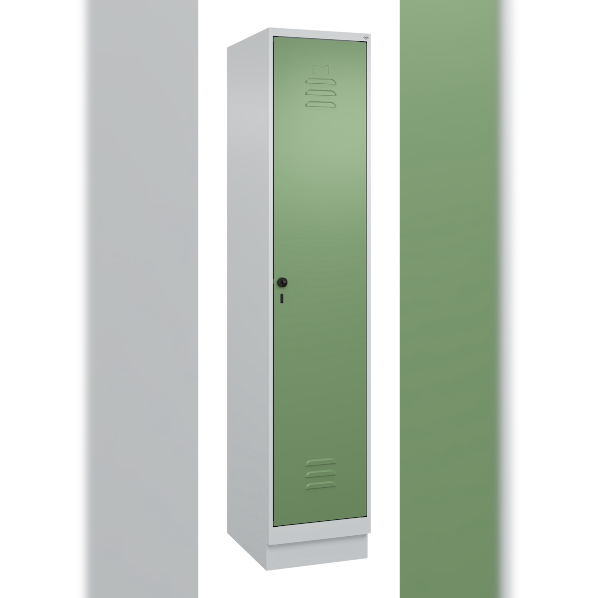 C+P Spind Classic PLUS, Sockel, 1 Abteil, HxBxT 195x40x50cm, Sicherheitsdrehriegel, Hellgrau/Resedagrün von PROREGAL