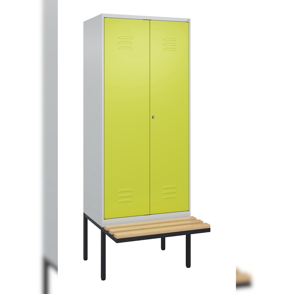 C+P Doppel-Spind Classic PLUS, schwebender Sitzbank aus Buche 2 Abteile, HxBxT 212x80x82cm, Zylinderschloss, Hellgrau/Clowngrün von PROREGAL