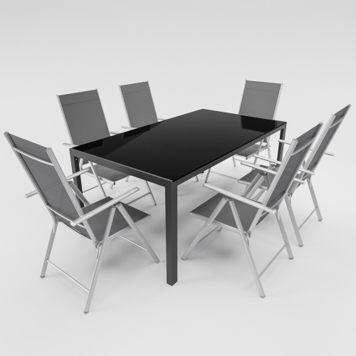 Lex 7-tlg. Gartenmöbel Set Tisch Stuhl Glasplatte Alu Klappsessel 7-fach verstellbar