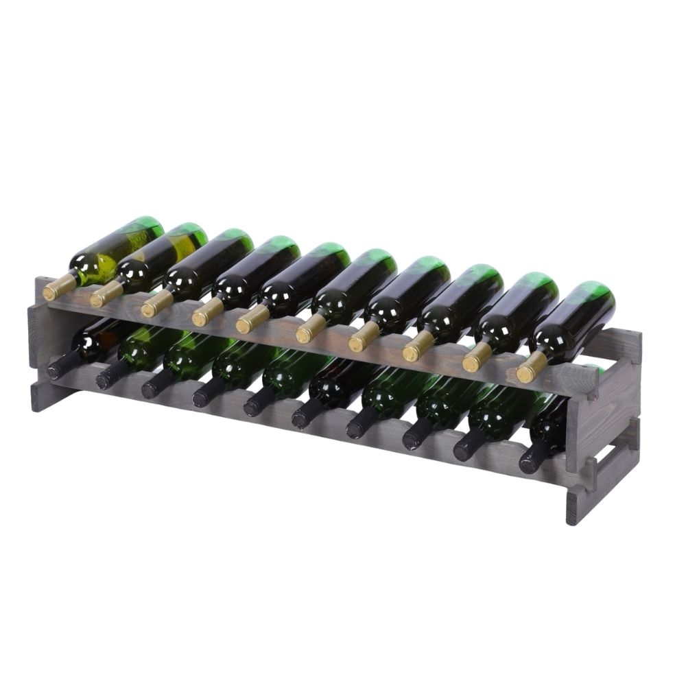 Proregal Weinregal VINOTECA FLEX PRO | HxBxT 23x103x28cm | 20 Flaschen auf 2 Ebenen | Massives Kiefernholz | Grau
