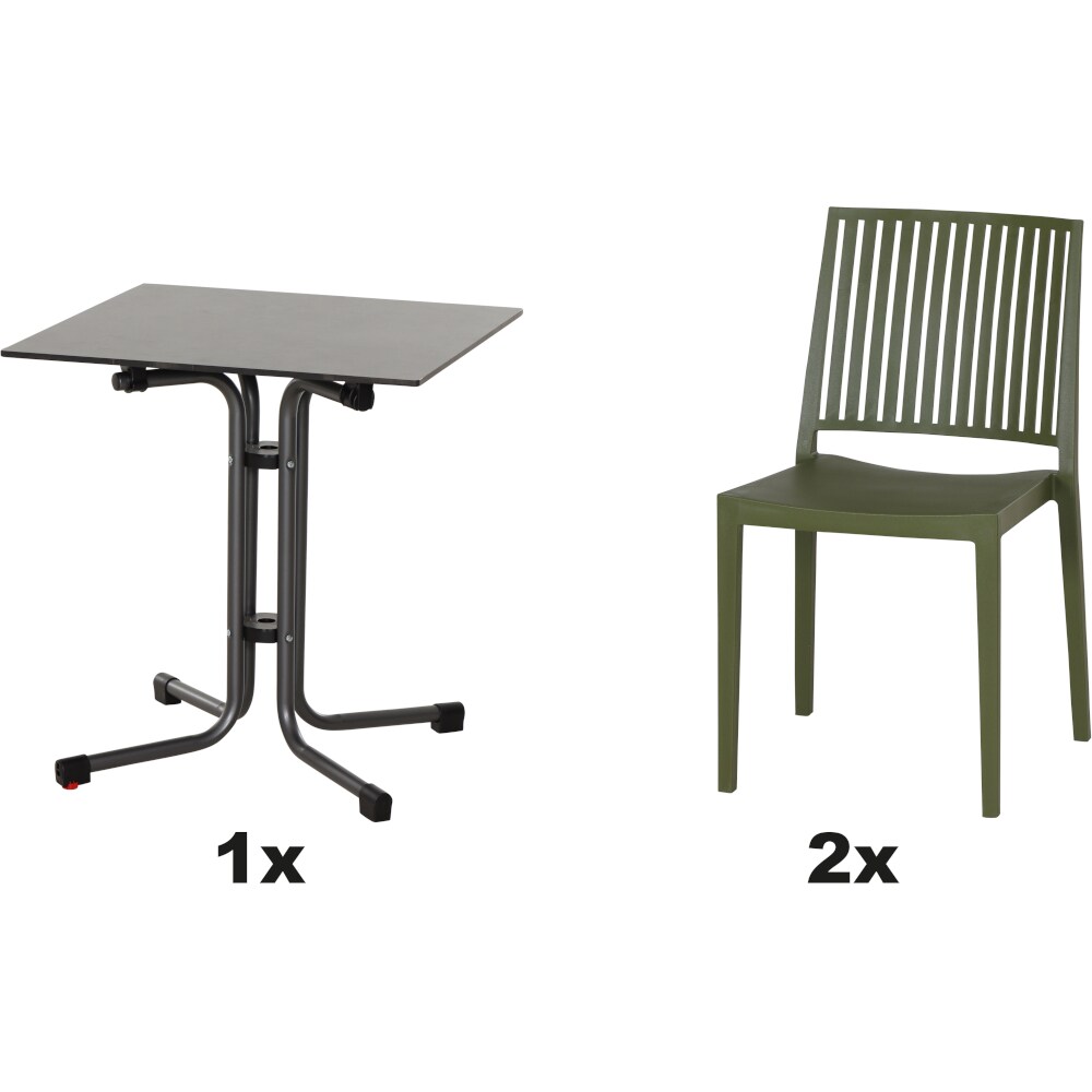 SIENA GARDEN Urban Lights Set 3teilig Lane Stuhl gastrotauglich olive mit Tisch Sola 65x65