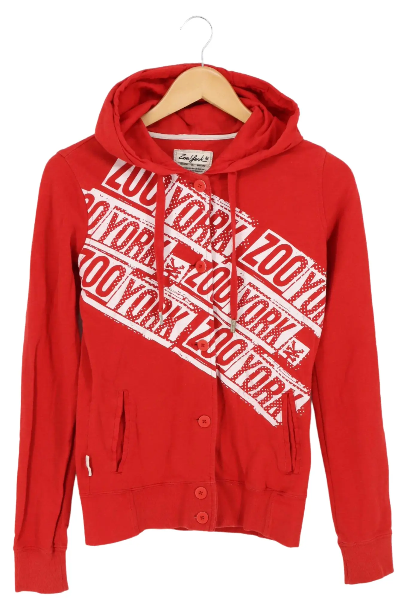 ZOO YORK Kapuzenpullover Damen XS Rot Knopfleiste Casual
