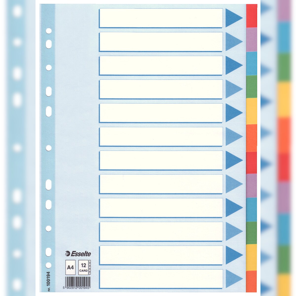 Esselte Kartonregister Standard Blanko, A4, Karton, 12 Blatt, weiss
