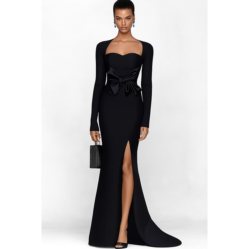 Mermaid Trumpet Floor Length Evening Gown Ball Gown Formal Dress Elegant Silky Long Sleeve Square Neck Wedding Formal Stretch Crepe with Bow(s)