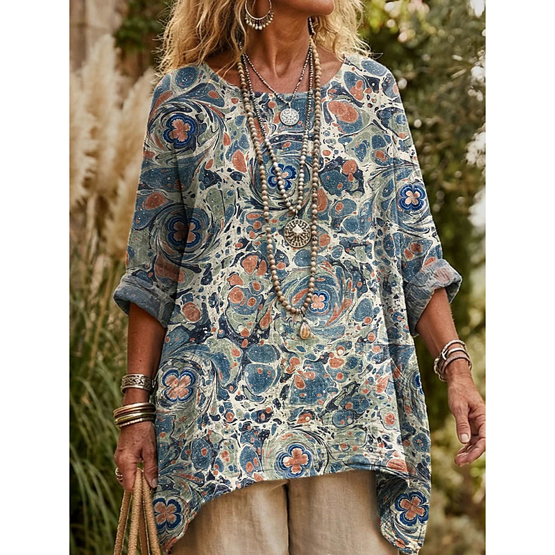 Women's Shirt Blouse Floral Graphic Vintage Daily Stylish Long Sleeve Crew Neck Regular Tops Daily Going out Print Blue Orange Green Beige Summer Spring Fall