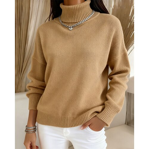 Per donna Felpa Maglione Elegante Moda Streetwear Tinta unica Dolcevita Lavorato a maglia Manica Lunga Top Regolari Maglia All'aperto Casa Lavoro Nero Bianco Autunno Inverno
