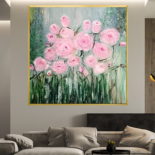Handgemacht Hang-Ölgemälde Handgemalte Quadratisch Abstrakt Blumenmuster / Botanisch Klassisch Modern Ohne Innenrahmen (ohne Rahmen)