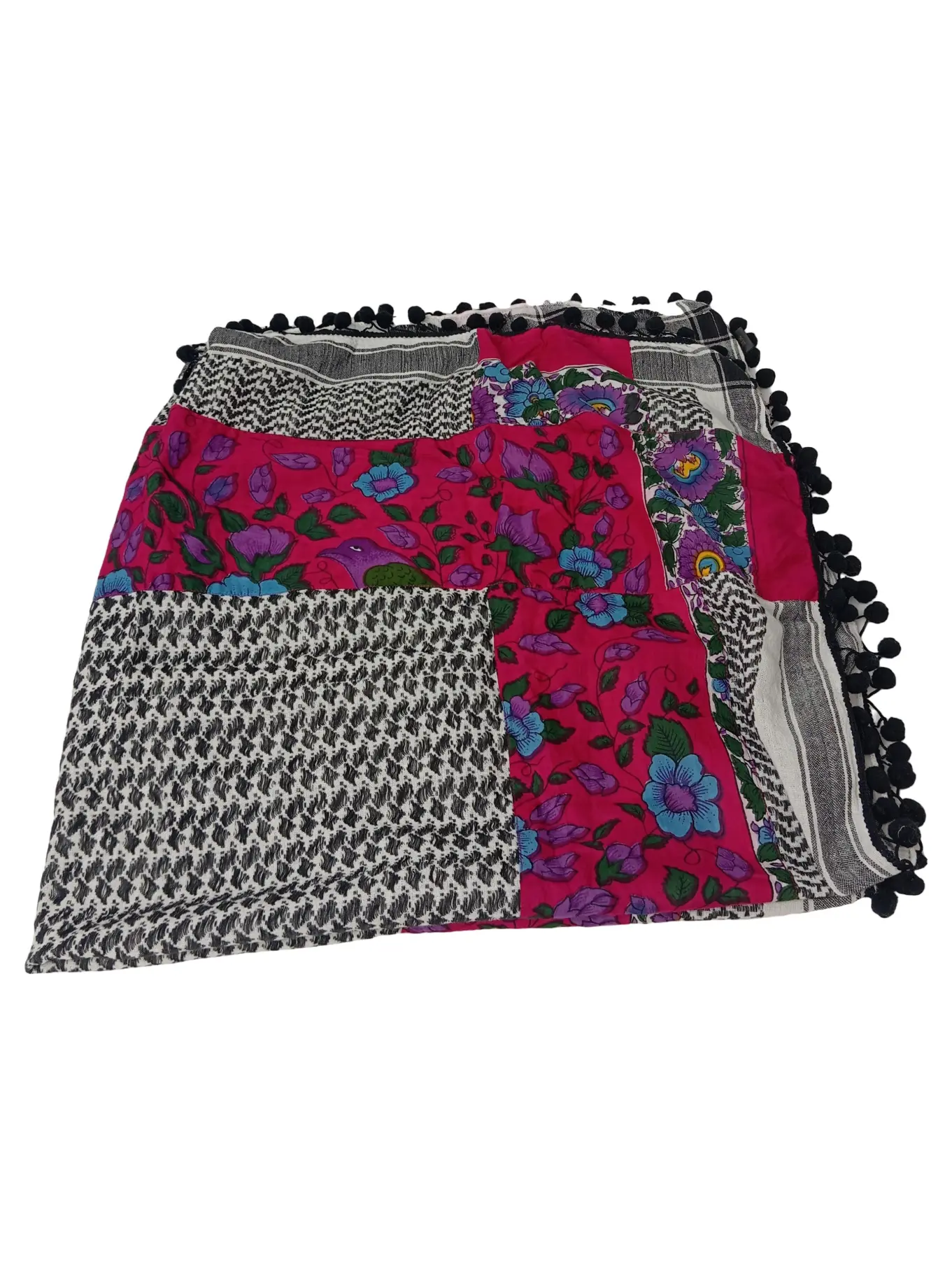 ERFURTER BANK EG Tuch Baumwolle Bommel Grau Rosa Lila Grün