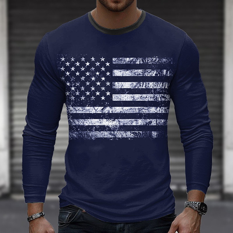 US America 250 Year Anniversary Men's American US Flag T Shirt Long Sleeve T shirt 3D Print Crew Neck Shirt Fashion Outdoor Street Sports Outdoor Black White Blue Summer Spring Clothing Apparel