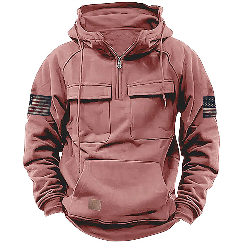 Men's Hoodie Quarter Zip Hoodie Black Pink Wine Blue Green Hooded National Flag Drawstring Pocket Sports Outdoor Daily Holiday Streetwear Basic Casual Spring Fall Clothing Apparel Hoodies