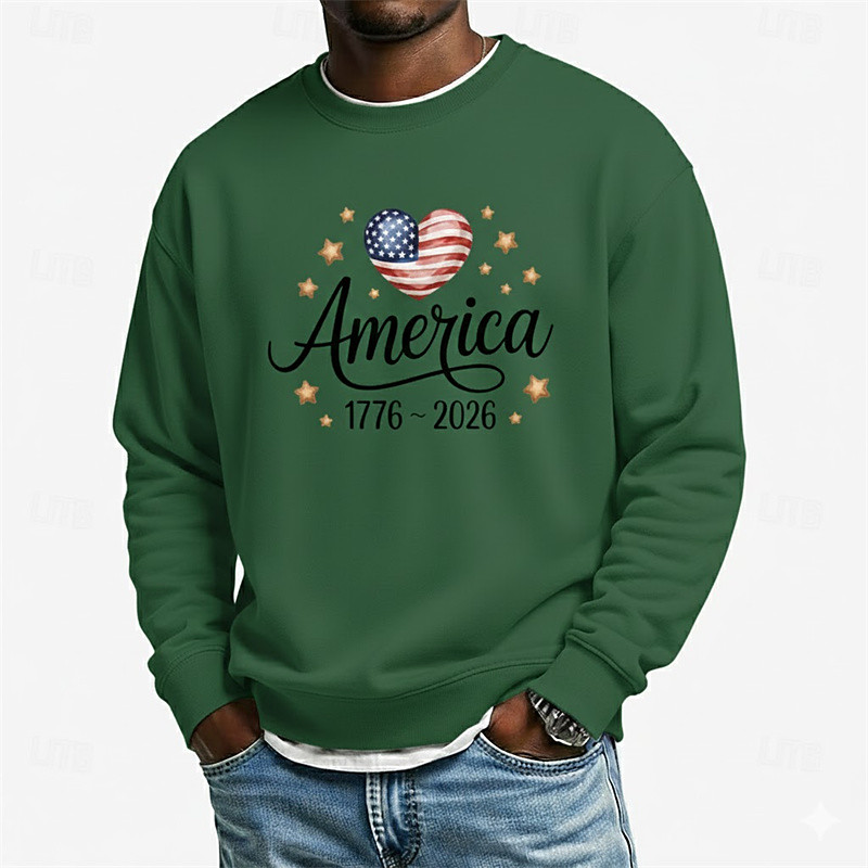 Men's Graphic American US Flag 250th Anniversary Sweatshirt Sports Fashion Daily Classic Crew Neck Outdoor Vacation Pink Red Green Gray Printing Spring Fall Designer S M L XL XXL XXXL