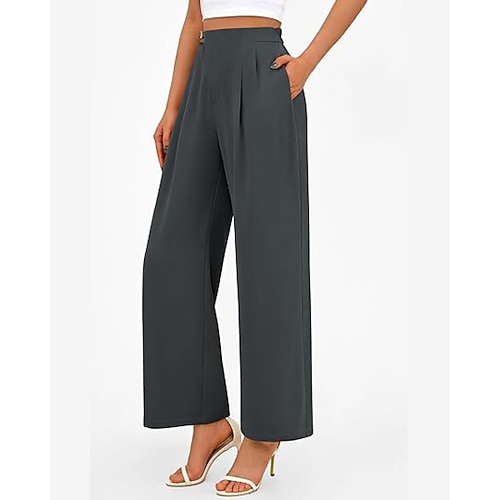 Per donna Gamba larga Chinos Moda Streetwear Casual Lunghezza intera Vita Alta Semplice Tasca Comodo Comodità Morbido Inelastico All'aperto Streetwear blu navy Aalbicocca Nero Grigio Primavera