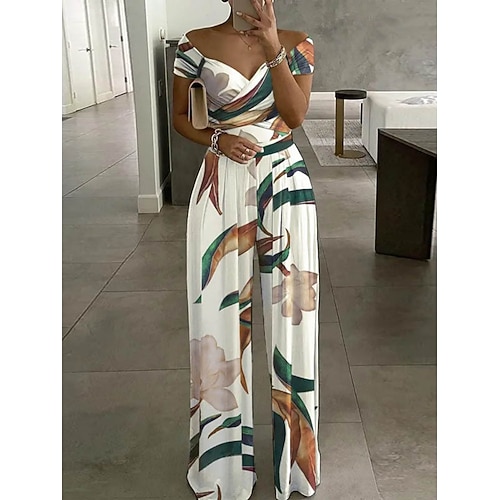Per donna Normale Tuta Elegante Floreale Manica Corta Gamba larga Senza Spalle Vita alta Vacanza Quotidiano Vestibilità regolare Nero Bianco Rosso Estate
