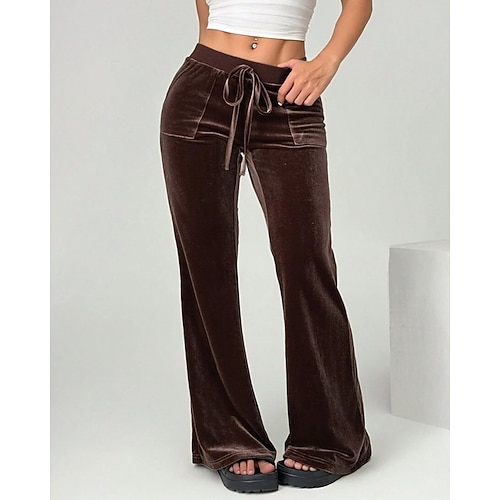 Per donna Gamba larga Pantaloni Eleganti Streetwear Casual Lunghezza intera Naturale Semplice Tasca Design con Coulisse Elastica Comodo Streetwear Ferie Rosso violaceo Nero Verde militare Marrone