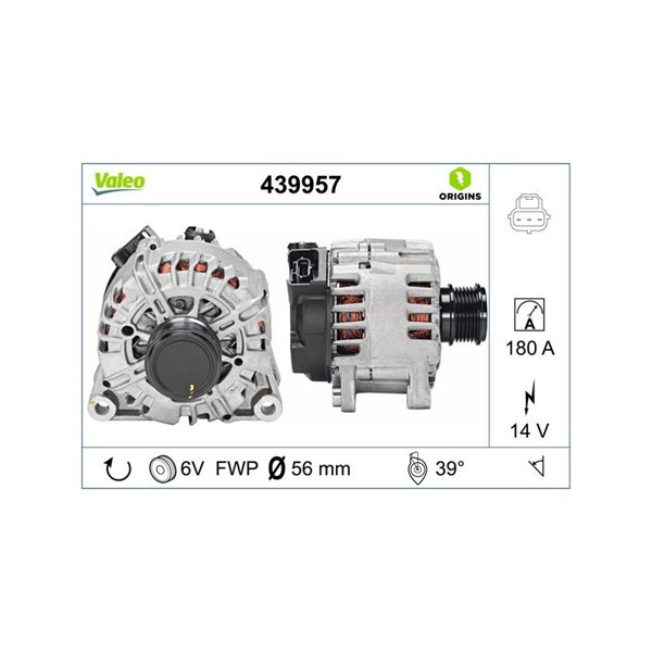 Laturi 14V 180A Valeo 439957 - ford galaxy iii, mondeo halvkombi v, mondeo sedan v, mondeo turnier v, s-max - OE 1870357, DS7T10300KB, DS7T-10300-KB