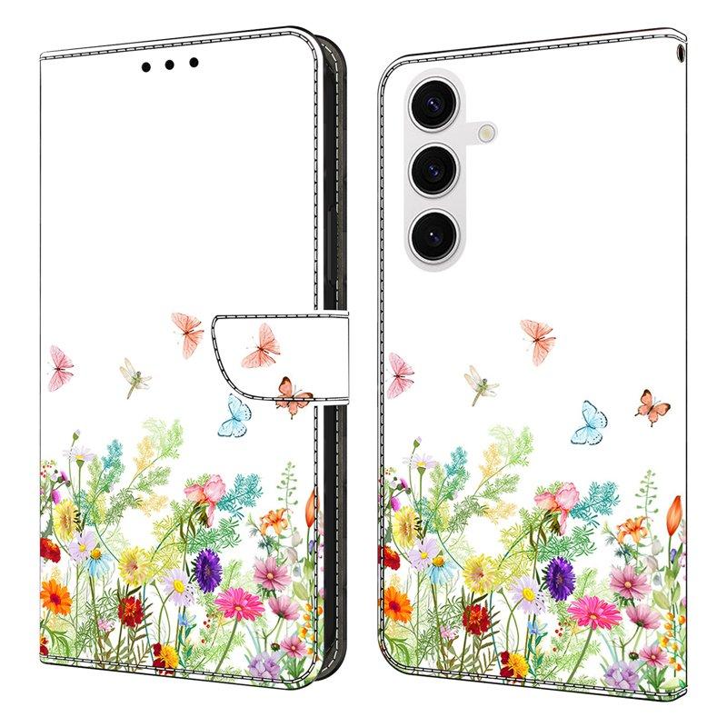 Plånboksfodral för Samsung Galaxy S26 Plus Konstläder Blommor och Gräs Mörkgrön