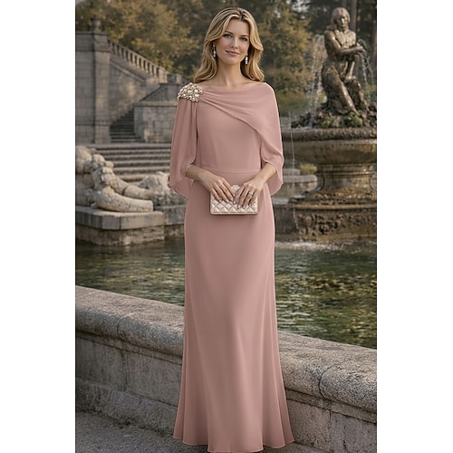 Linea ad A Abito Lunghezza al pavimento Abito da invitata a nozze Abito Formale Abito da sera Abito da cerimonia per signora Manica 3/4 Scollo a Barca Elegante Semplice Minimalista Formale Chiffon