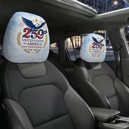 Copri poggiatesta per auto con stampa della bandiera americana dell'indipendenza, 2 pezzi, protezione per sedili con design ad alta elasticità e senza imbottitura, copri poggiatesta per sedili auto,