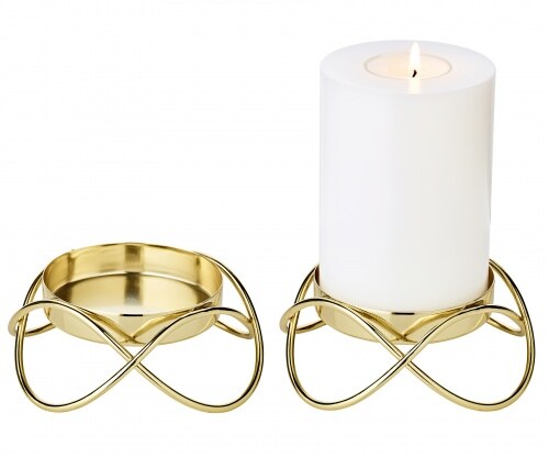 EDZARD 2er-Set Kerzenhalter Bastia (ø 13 cm, H 4,5 cm), Gold, Edelstahl vernickelt, für Kerzen ø 8 cm
