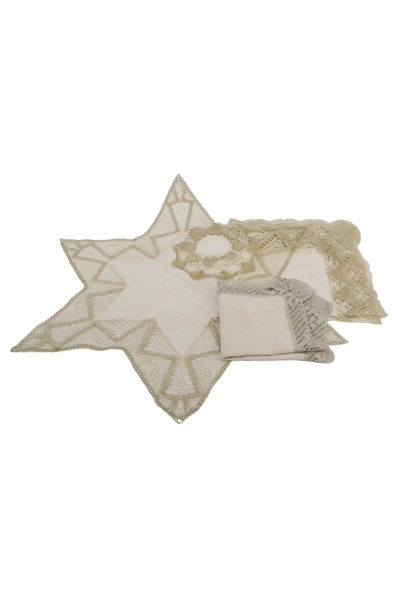 Vintage Tischdecken Set Sternform Beige Ø 16 cm