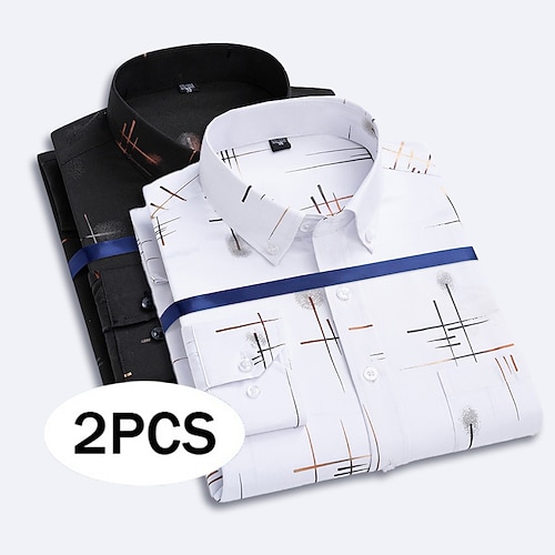 Per uomo Camicia Camicia elegante Camicia button-down Astratto Quotidiano Affari Bianco Viola Azzurro nero Azzurro chiaro Vino Blu polvere nero / grigio Manica Lunga Collo ripiegato Tutte le