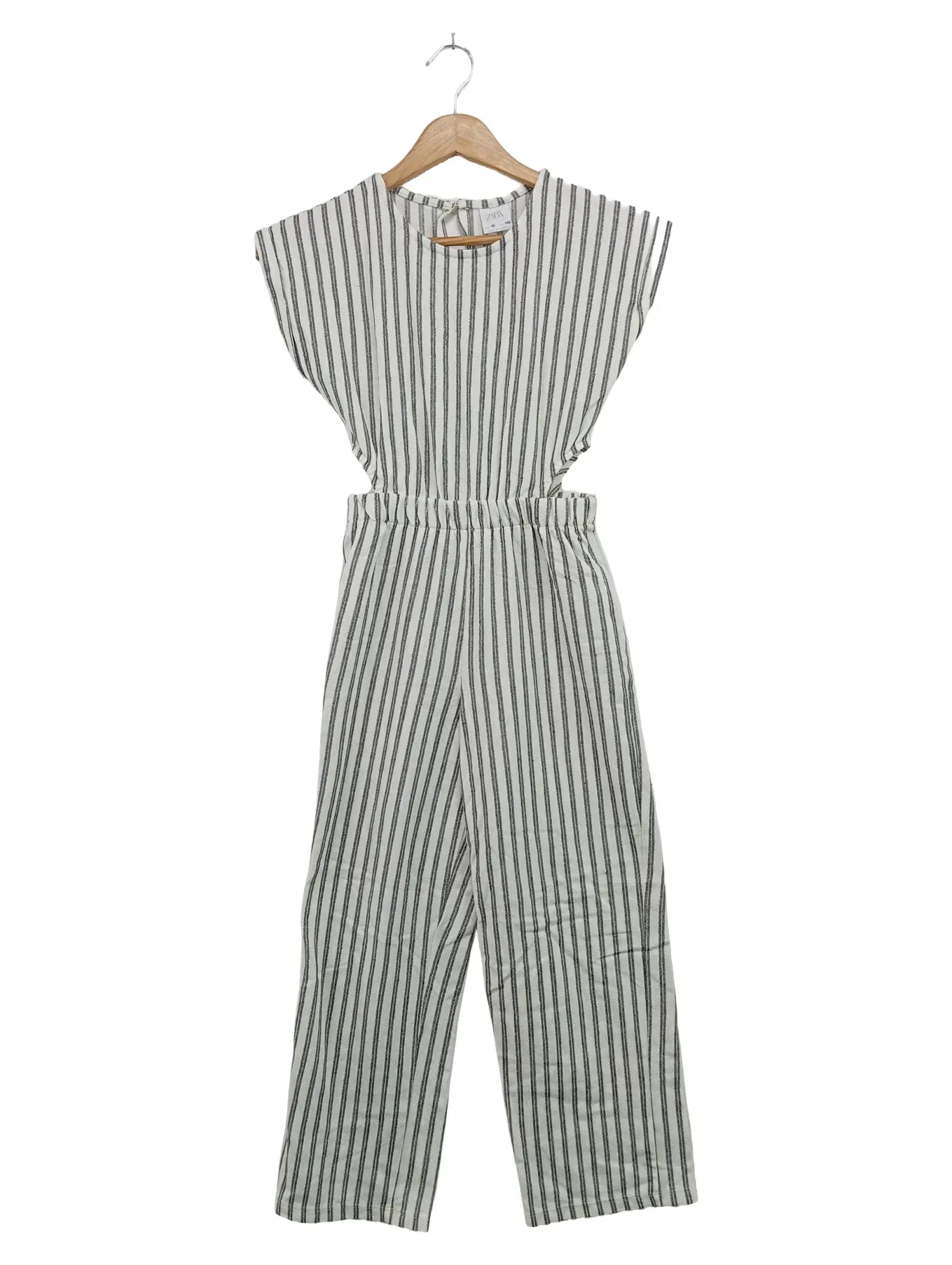 ZARA Jumpsuit Kinder 140 Grau Weiß Gestreift